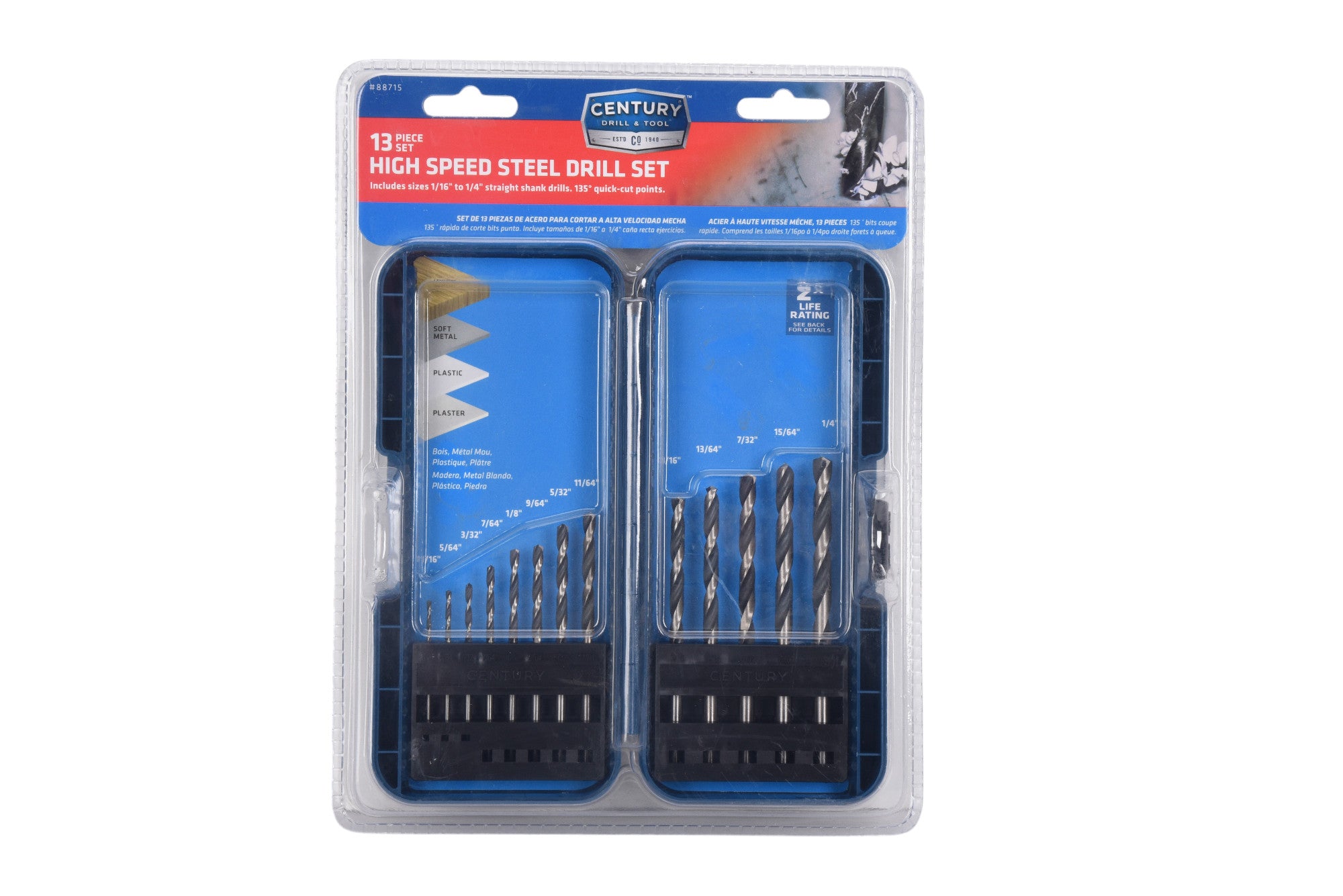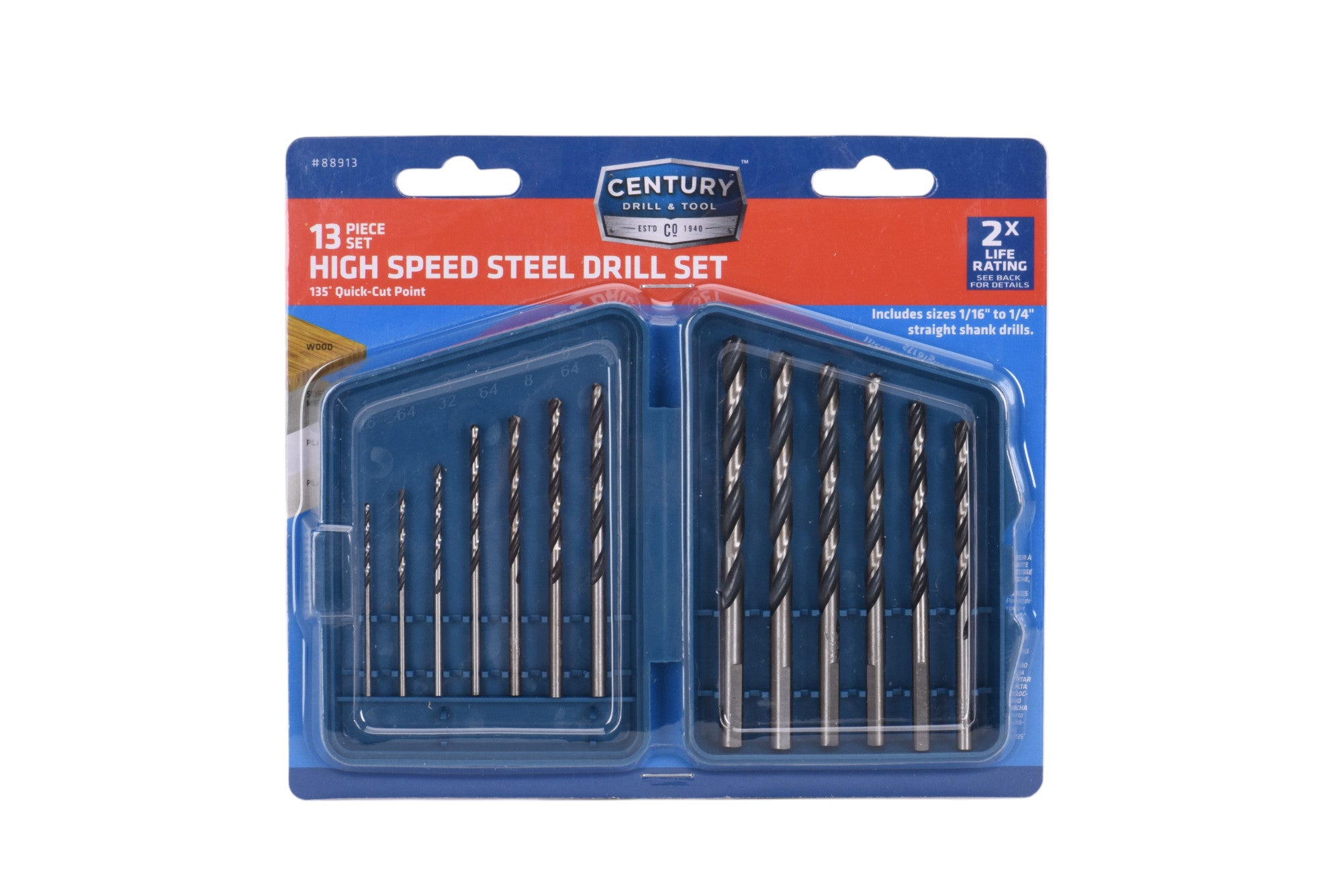 - No center punch needed: Century's 135° quick-cut points are self-centering and penetrate faster with less pressure. Drill bit will not "walk" or "wander" at the starting point.