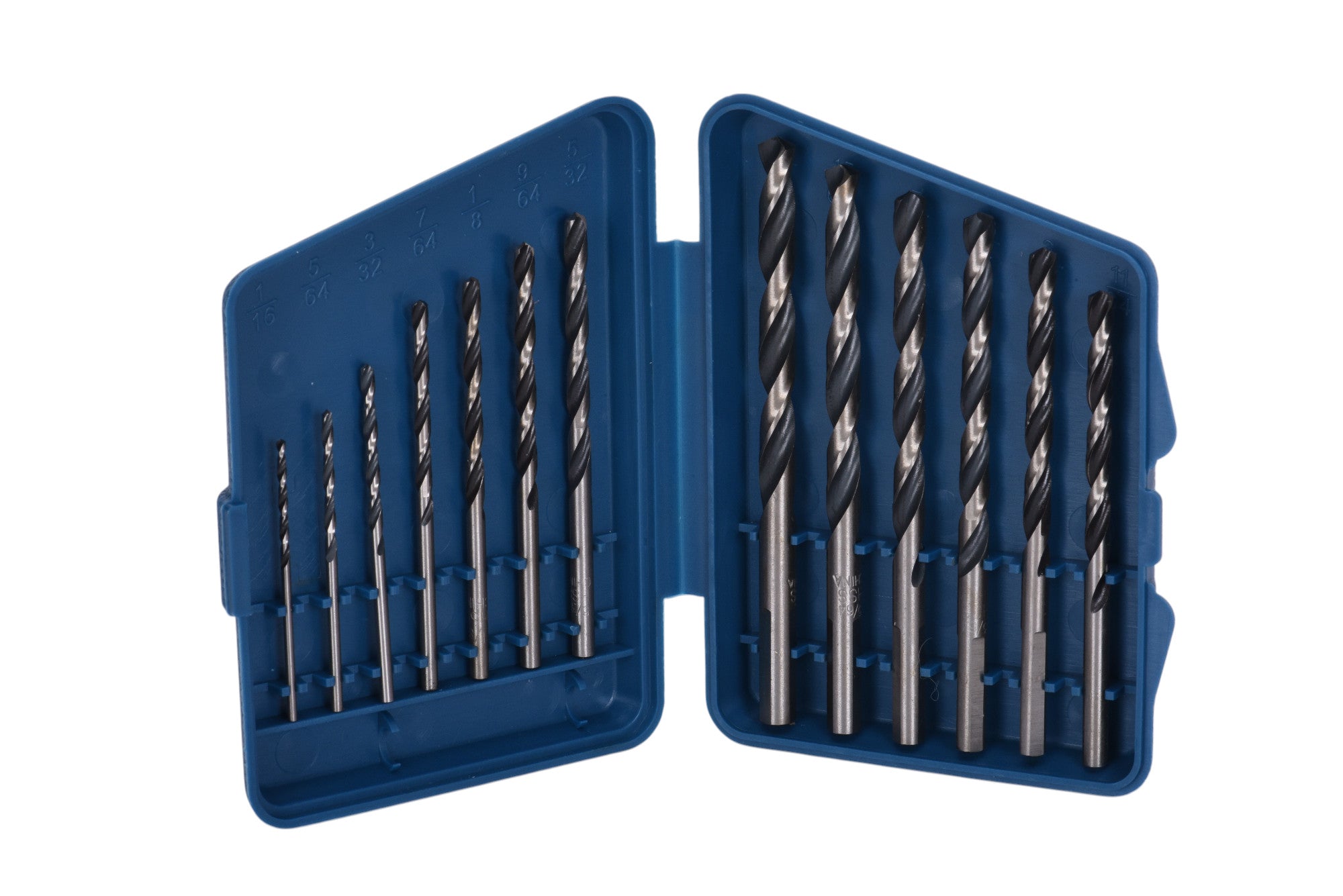 - Set includes: 1/16" to 1/4" by 64ths drill bits.