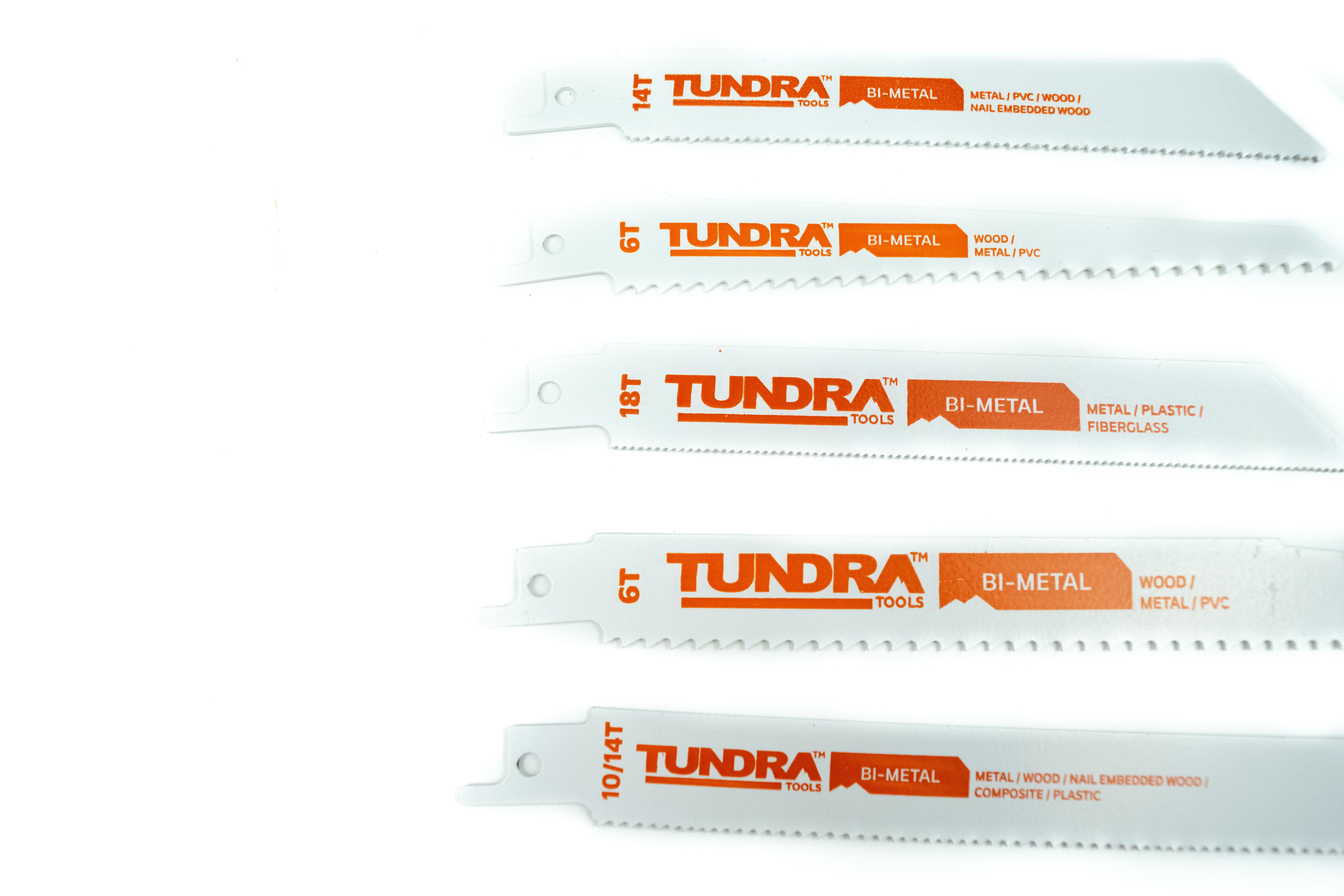 - Set includes: 6T x 6", 14T x 6", 18T x 6", 6T x 9", and 10/14T x 9" bi-metal reciprocating saw blades.