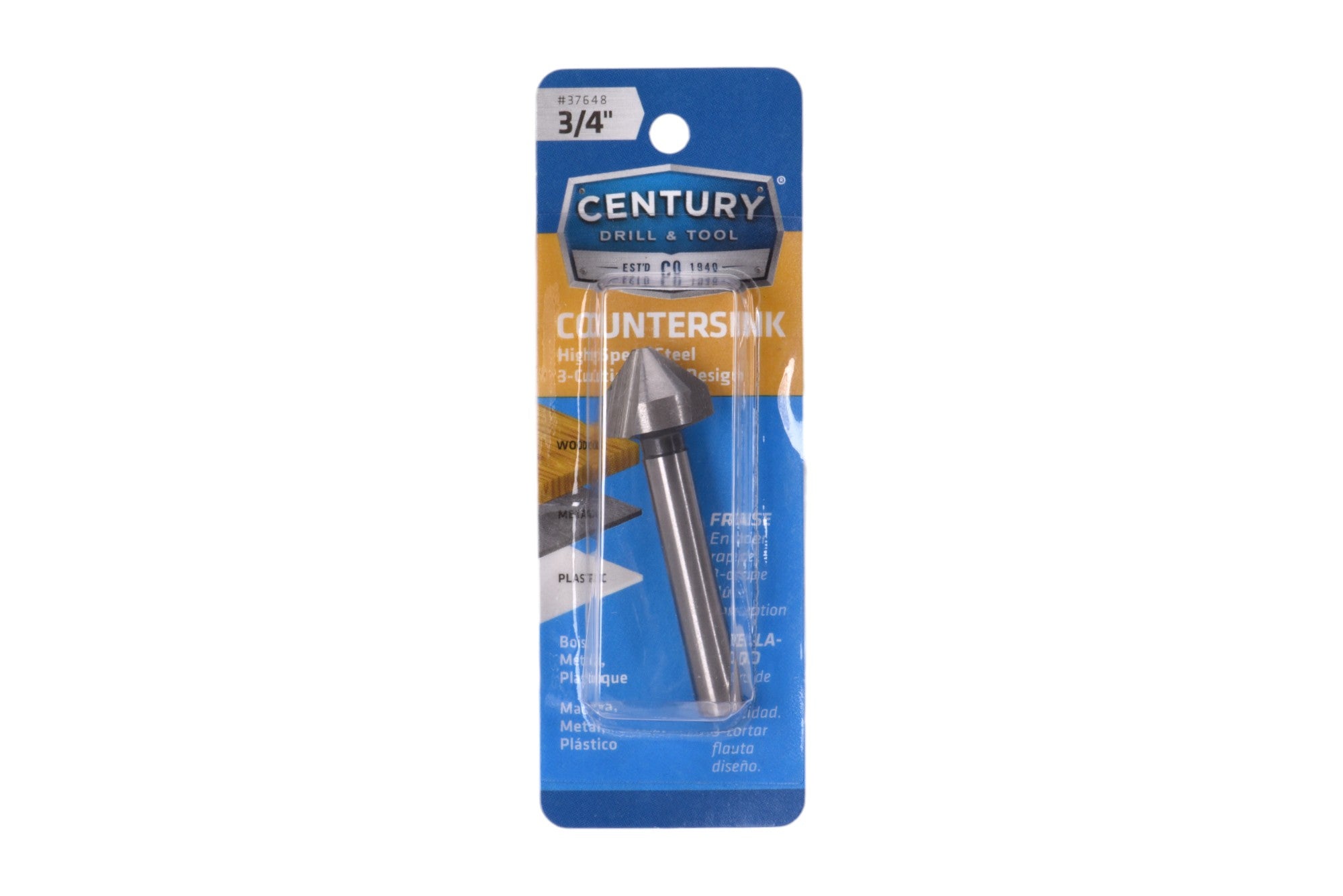 - Three cutting flute design for clean cuts in metal, wood, and plastic.