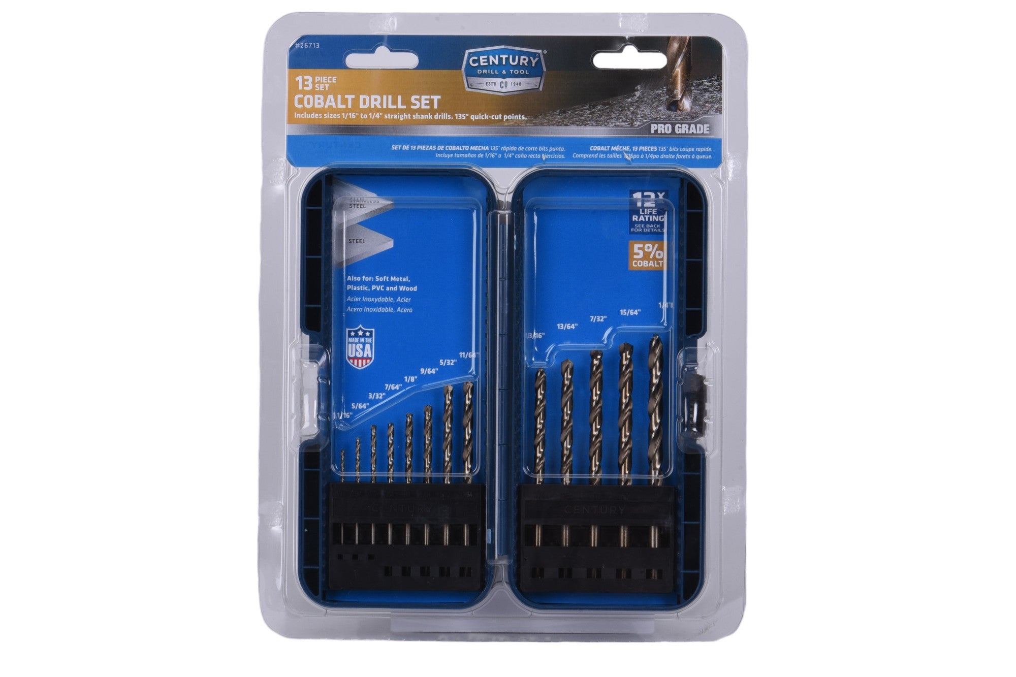 - No center punch needed: Century's 135° quick-cut points are self-centering and penetrate faster with less pressure. Drill bit will not "walk" or "wander" at the starting point.