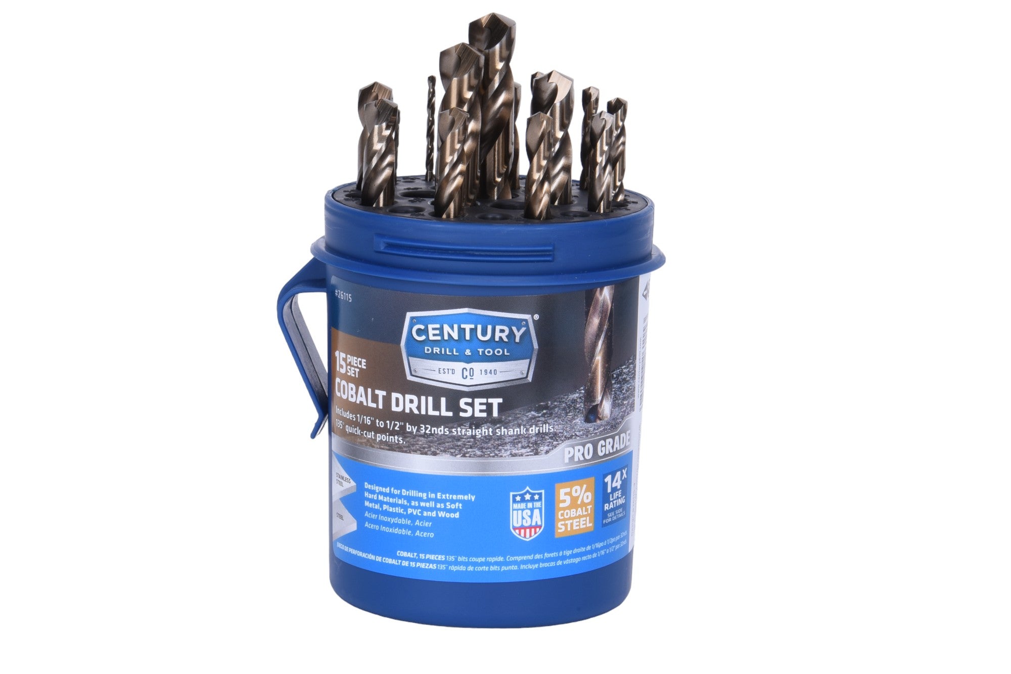 - Made from M35 steel with 5% cobalt, Century's Cobalt drill bits are designed to cut through extremely hard metals, including stainless steel.
